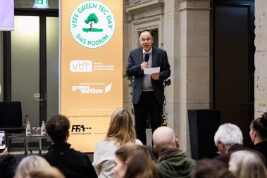 Volles Haus beim Green Tec Day des VTFF am Berlinale-Montag in der Berlin-Brandenburgischen Akademie der Wissenschaften: Rund 260 Gäste diskutierten mit hochrangigen Vertreter*innen aus Politik, Branche und Förderinstitutionen über die Zukunft des Produktionsstandorts Deutschland – und über die nächste Stufe nachhaltiger Filmproduktion in Europa.