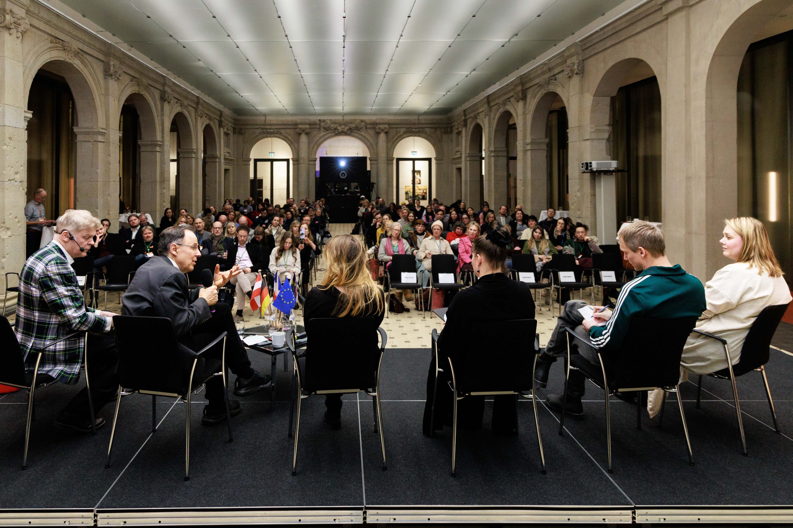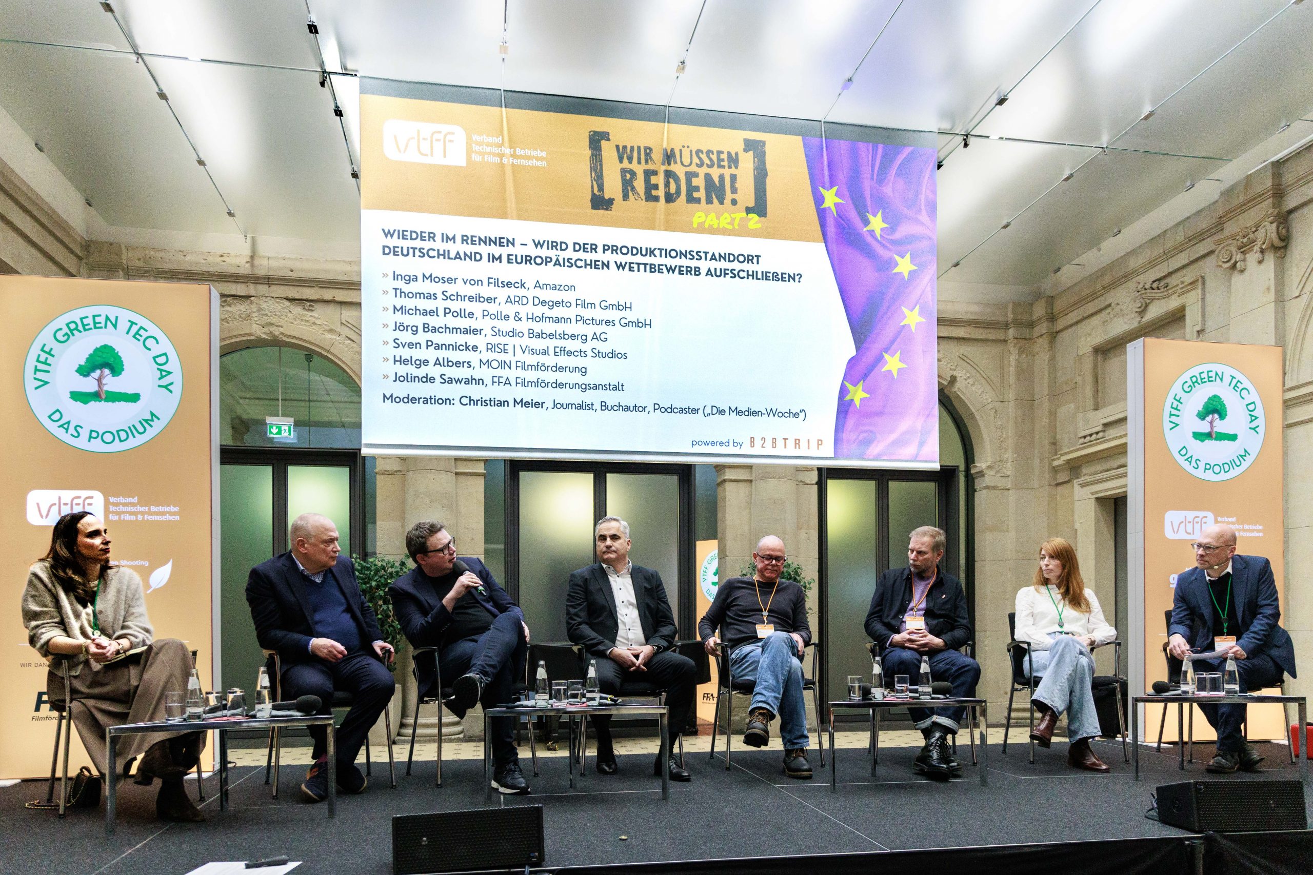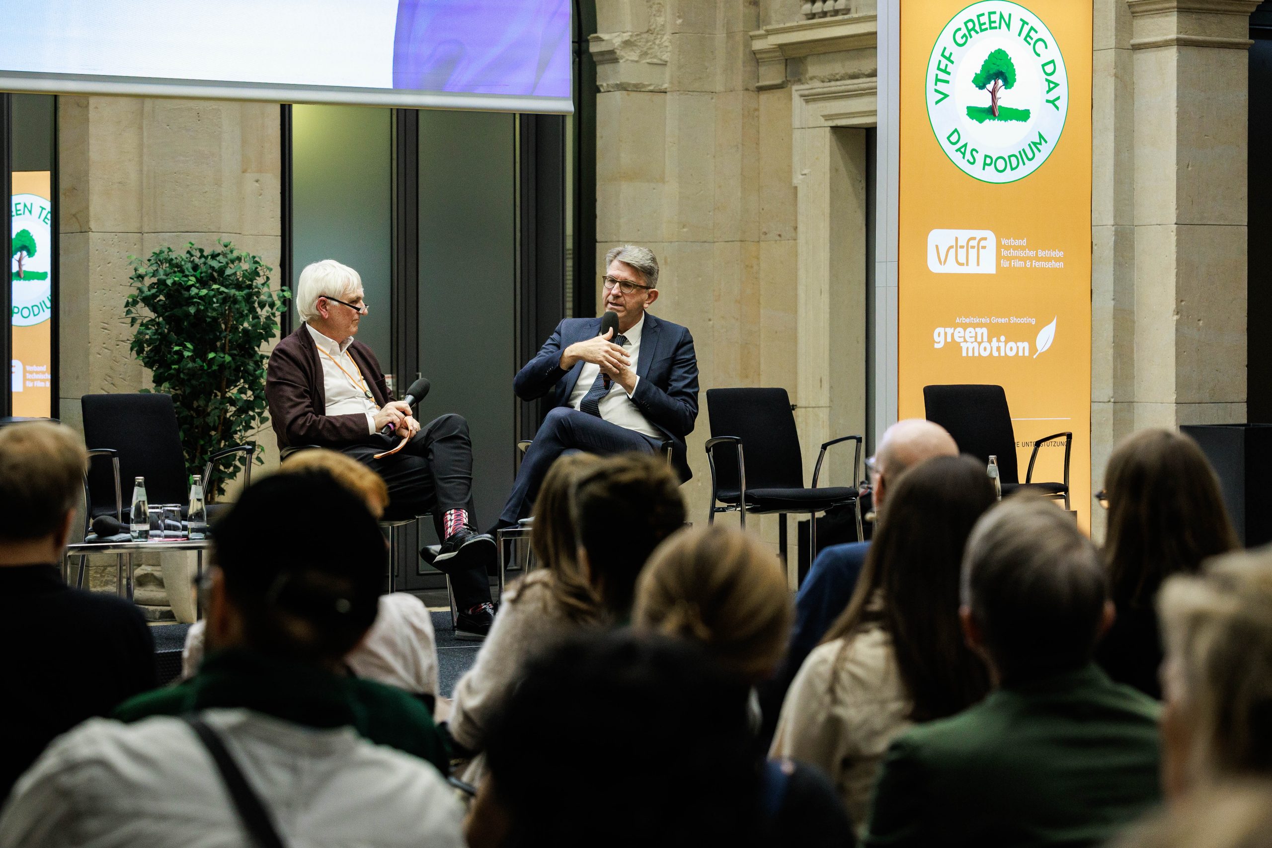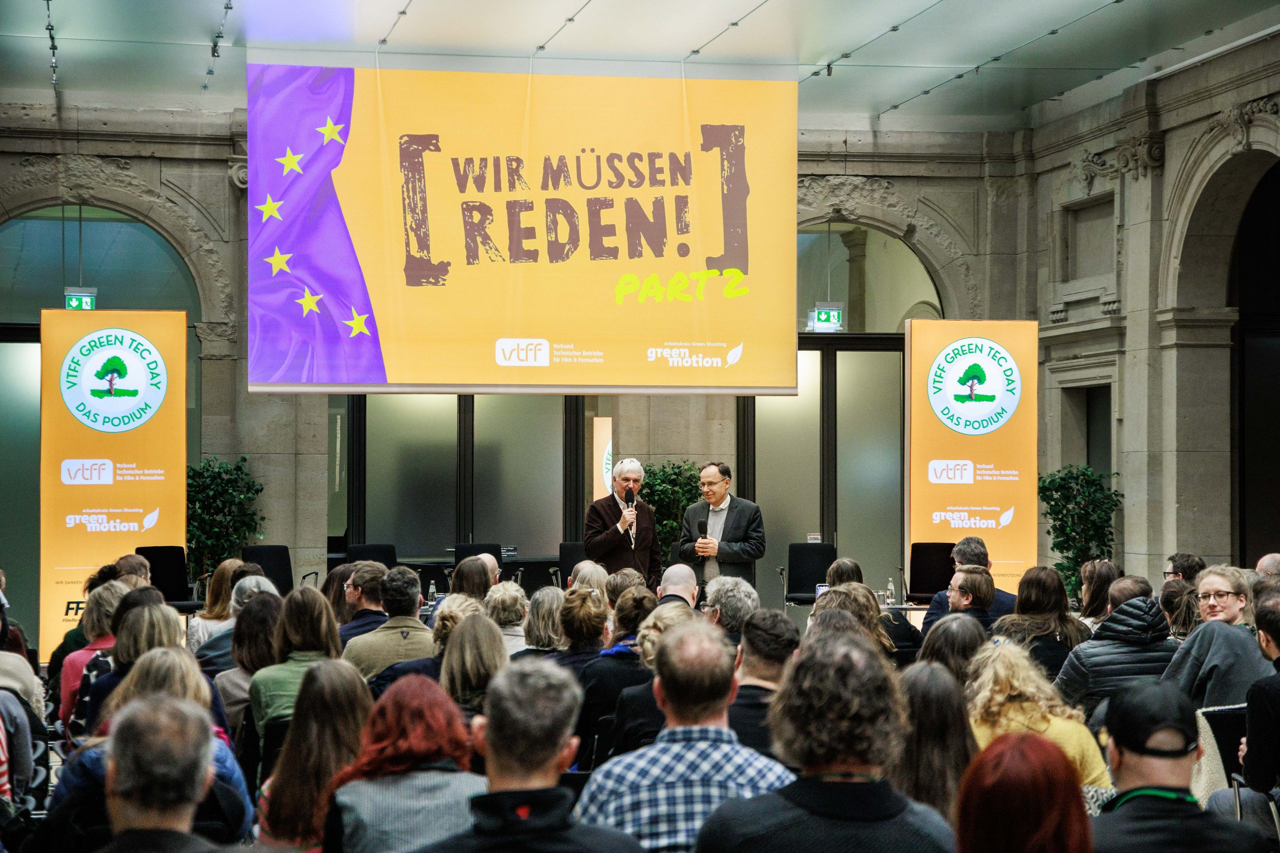 Volles Haus beim Green Tec Day des VTFF am Berlinale-Montag in der Berlin-Brandenburgischen Akademie der Wissenschaften: Rund 260 Gäste diskutierten mit hochrangigen Vertreter*innen aus Politik, Branche und Förderinstitutionen über die Zukunft des Produktionsstandorts Deutschland – und über die nächste Stufe nachhaltiger Filmproduktion in Europa.